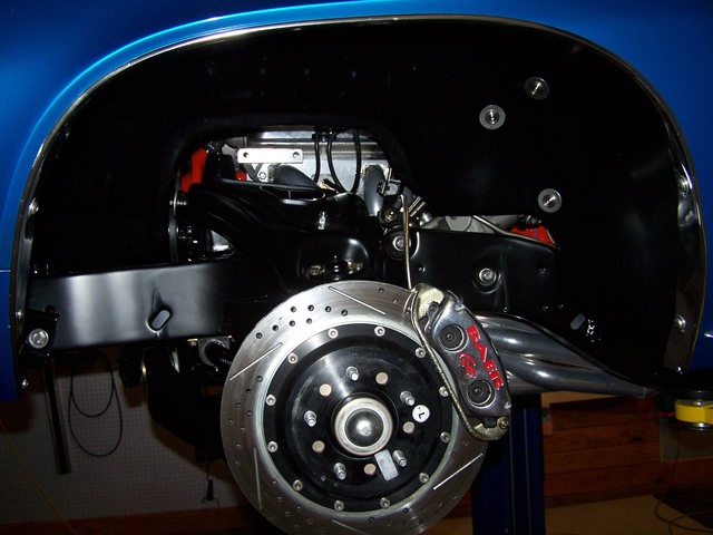 The original block was completely rebuilt and stroked to 383 cubic inches. A solid roller cam, aluminum heads, and a Wayne Guinn certified GM Cross-ram intake and carbs were utilized. The additional cubic inches, great engine building and tuning skills by RaceKrafters make for a great combination. The engine idles at just over 800 rpm, never loads up, and can be driven anywhere.