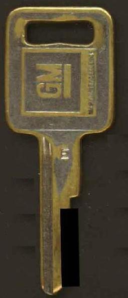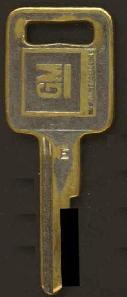 As shipped from the GM assembly plant, vehicle keys had a knockout area at the key ring hole that was imprinted with a 4-character code (number/letter/number/number) that correlates to the lock tumbler combination (a 6-digit number described in more detail below). (Only the original keys, and B&S pre-punched factory replacement keys, come stamped with the lock code.) The knockout tabs were made to be removed and stored by the owner in case the keys were lost - a locksmith could make a new key from the code number without having to remove a lock. There was a small hole in the knockout area to accommodate a temporary wire key ring. If the knockouts were left in the key, the tiny hole through the knock-out was often drilled-out to a larger diameter to allow a key ring to pass through the hole. Until about 1980, B&S furnished GM key blanks only with the knockouts intact. Locksmith Dorothy Friend wryly suggests that this must have been "to give the locksmith something to do during slack periods, since most of us needed the knockouts punched out to get them on the hooks of our key boards." The knockouts for the key blanks, obviously, did not have a code stamped on them.