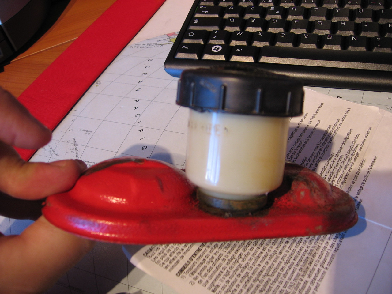 Jar for looking brake fluid level , required by law.